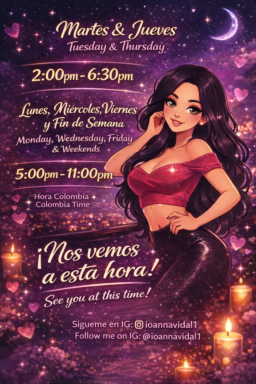 Connect with me on my new schedules (Colombia Time 🇨🇴) and don't miss what happens when night falls...